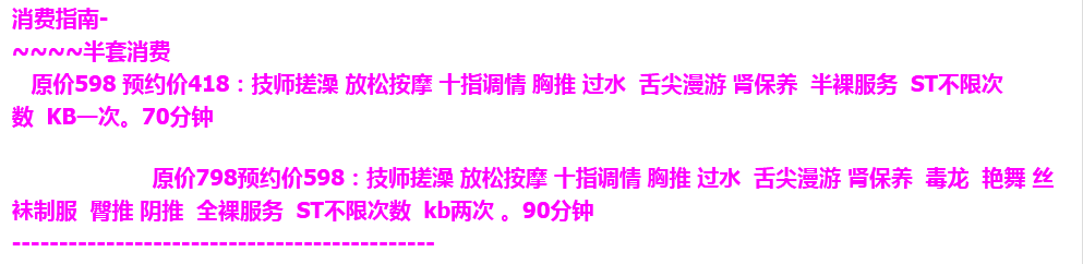 柔情BT套餐:418 80分钟; 精品 KB套餐 :598 90分钟;保证足钟服务!